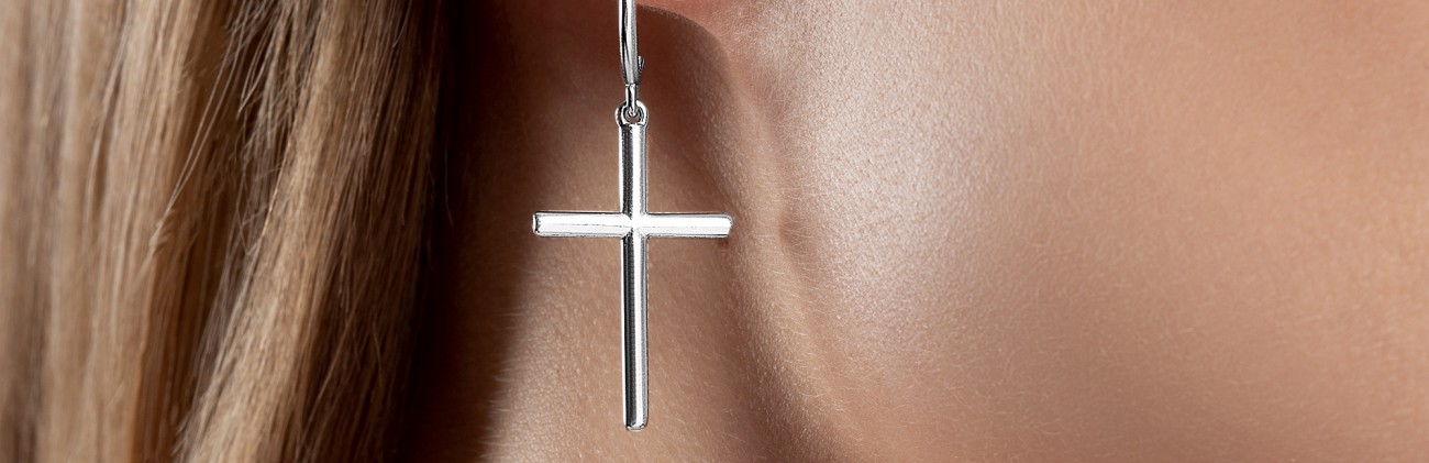 Серебряные серьги-пуссеты CROSS II - универсальное украшение для юношей и девушек. Можно носить отдельно как моносерьгу. Без камней и вставок.