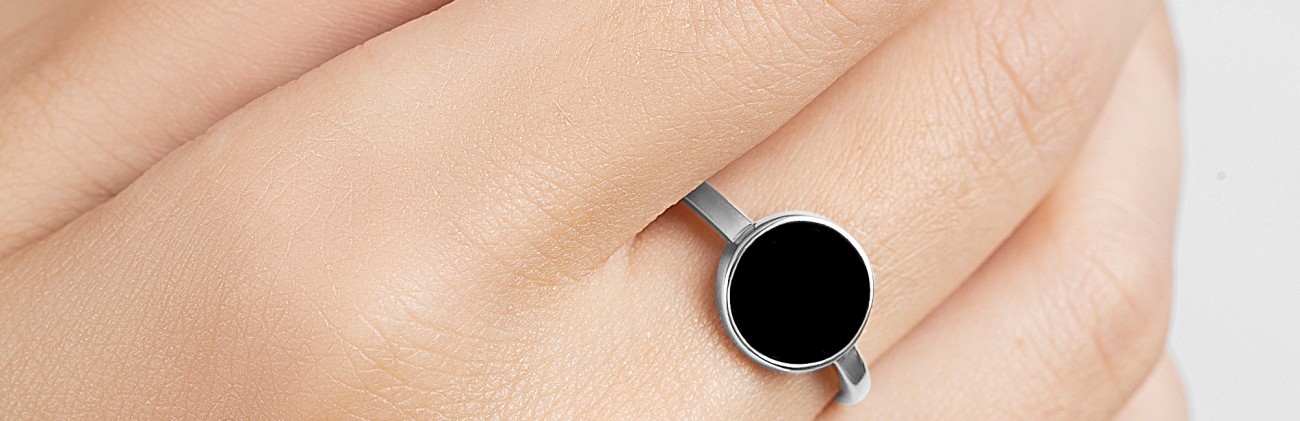 Серебряное кольцо NEGRO - простое украшение для юношей и девушек в стиле современный минимализм c использованием техники холодной эмали. Ширина шинки 2 мм, диаметр центральной части 10 мм. Имеет декоративное и надежное защитное покрытие белым родием. Такое же покрытие используется в изделиях из белого золота 585 пробы. Родий – драгоценный металл платиновой группы и, нанесенный на поверхность украшения, позволяет сохранить его первоначальный вид, защищая от механических повреждений и потемнения. Толщина покрытия 10 мкм. Средний вес 1,56 гр. Противопоказано людям, имеющим гиперчувствительность к драгоценным металлам платиновой группы: платине, палладию, родию.