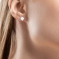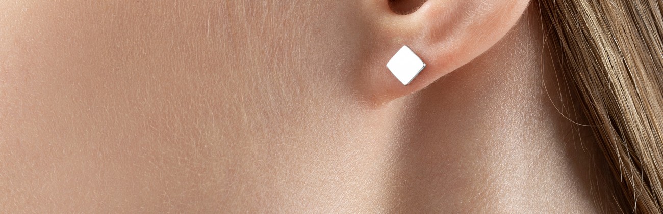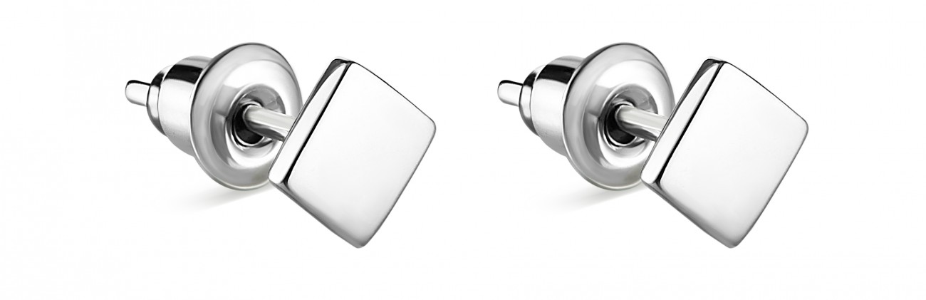 Серебряные серьги-пуссеты QUATRA – простое украшение для юношей и девушек в стиле современный минимализм. Без камней и вставок. Имеют декоративное и надежное защитное покрытие белым родием. Такое же покрытие используется в изделиях из белого золота 585 пробы. Родий – драгоценный металл платиновой группы и, нанесенный на поверхность украшения, позволяет сохранить его первоначальный вид, защищая от механических повреждений и потемнения. Толщина покрытия 10 мкм. Надеваются и застегиваются серьги так же, как серьги-гвоздики. Удобный и компактный силиконовый фиксатор в оправе из родированного ювелирного сплава позволяет просто и надежно зафиксировать украшение на любой мочке уха. Размер застежки 5,5х5 мм. Длина штифта для фиксации застежки 10 мм, диаметр штифта 0,8 мм. Более тонкий штифт, чем у стандартных винтовых застежек (1,2 мм) обеспечивает максимальный комфорт при надевании и ношении. Размер декоративной части 5х5 мм. Толщина 1,2 мм.