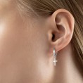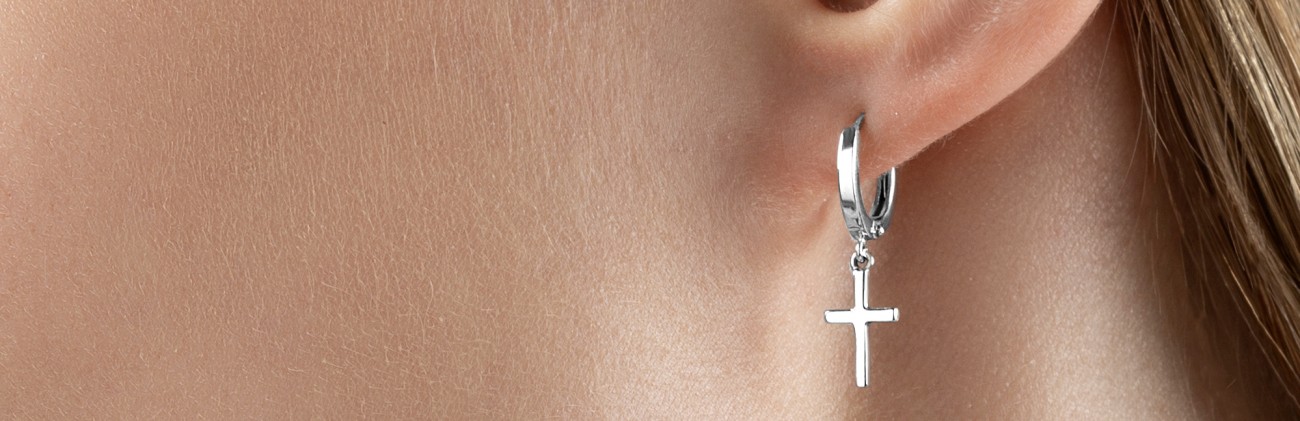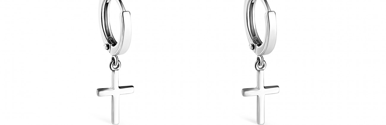 Серебряные серьги-пуссеты CROSS III – простое украшение для юношей и девушек в стиле современный минимализм. Без камней и вставок. Имеют декоративное и надежное защитное покрытие белым родием. Такое же покрытие используется в изделиях из белого золота 585 пробы. Родий – драгоценный металл платиновой группы и, нанесенный на поверхность украшения, позволяет сохранить его первоначальный вид, защищая от механических повреждений и потемнения. Толщина покрытия 10 мкм. Надеваются и застегиваются серьги так же, как серьги-гвоздики. Удобный и компактный силиконовый фиксатор в оправе из родированного ювелирного сплава позволяет просто и надежно зафиксировать украшение на любой мочке уха. Размер застежки 5,5х5 мм. Длина штифта для фиксации застежки 10 мм, диаметр штифта 0,8 мм. Более тонкий штифт, чем у стандартных винтовых застежек (1,2 мм) обеспечивает максимальный комфорт при надевании и ношении. Диаметр кольца 11 мм. Длина декоративной части 10 мм. Толщина 1 мм. Общая длина изделия 21 мм
