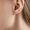 Серебряные серьги-пуссеты SPARKA I – простое украшение в стиле современный минимализм. С бесцветными камнями - фианитами. Диаметр фианита 3 мм. Подойдут для ношения как в основных, так и в дополнительных проколах. Имеют декоративное и надежное защитное покрытие белым родием. Такое же покрытие используется в изделиях из белого золота 585 пробы. Родий – драгоценный металл платиновой группы и, нанесенный на поверхность украшения, позволяет сохранить его первоначальный вид, защищая от механических повреждений и потемнения. Толщина покрытия 10 мкм. Надеваются и застегиваются серьги так же, как серьги-гвоздики. Удобный и компактный силиконовый фиксатор в оправе из родированного ювелирного сплава позволяет просто и надежно зафиксировать украшение на любой мочке уха. Размер застежки 5,5х5 мм. Длина штифта для фиксации застежки 10 мм, диаметр штифта 0,8 мм. Более тонкий штифт, чем у стандартных винтовых застежек (1,2 мм) обеспечивает максимальный комфорт при надевании и ношении на любых мочках ушей. Внешний диаметр декоративной части 3,2 мм.