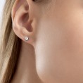 Серебряные серьги-пуссеты SPARKA II – простое украшение в стиле современный минимализм. С бесцветными камнями - фианитами. Диаметр фианита 3,5 мм. Подойдут для ношения как в основных, так и в дополнительных проколах. Имеют декоративное и надежное защитное покрытие белым родием. Такое же покрытие используется в изделиях из белого золота 585 пробы. Родий – драгоценный металл платиновой группы и, нанесенный на поверхность украшения, позволяет сохранить его первоначальный вид, защищая от механических повреждений и потемнения. Толщина покрытия 10 мкм. Надеваются и застегиваются серьги так же, как серьги-гвоздики. Удобный и компактный силиконовый фиксатор в оправе из родированного ювелирного сплава позволяет просто и надежно зафиксировать украшение на любой мочке уха. Размер застежки 5,5х5 мм. Длина штифта для фиксации застежки 10 мм, диаметр штифта 0,8 мм. Более тонкий штифт, чем у стандартных винтовых застежек (1,2 мм) обеспечивает максимальный комфорт при надевании и ношении на любых мочках ушей. Внешний диаметр декоративной части 4 мм.