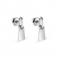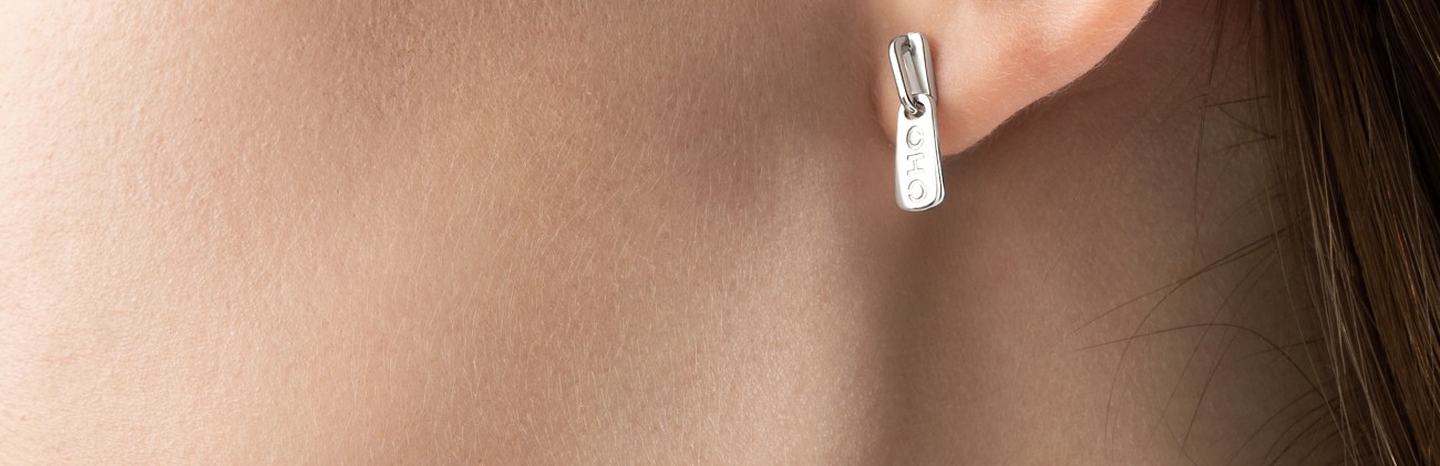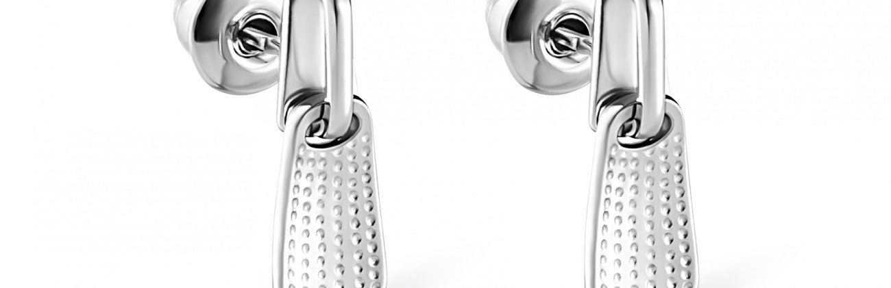 Серебряные серьги-пуссеты CHIUSURA из коллекции ОНО STYLE с фирменным логотипом в виде застежки-«молнии» – простое украшение в стиле современный минимализм. Без камней и вставок. Имеют декоративное и надежное защитное покрытие белым родием. Такое же покрытие используется в изделиях из белого золота 585 пробы. Родий – драгоценный металл платиновой группы и, нанесенный на поверхность украшения, позволяет сохранить его первоначальный вид, защищая от механических повреждений и потемнения. Толщина покрытия 10 мкм. Надеваются и застегиваются серьги так же, как серьги-гвоздики. Удобный и компактный силиконовый фиксатор в оправе из родированного ювелирного сплава позволяет просто и надежно зафиксировать украшение на любой мочке уха. Размер застежки 5,5х5 мм. Длина штифта для фиксации застежки 10 мм, диаметр штифта 0,8 мм. Более тонкий штифт, чем у стандартных винтовых застежек (1,2 мм) обеспечивает максимальный комфорт при надевании и ношении. Размер декоративной части 14Х4 мм. Толщина 1,0 мм.