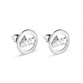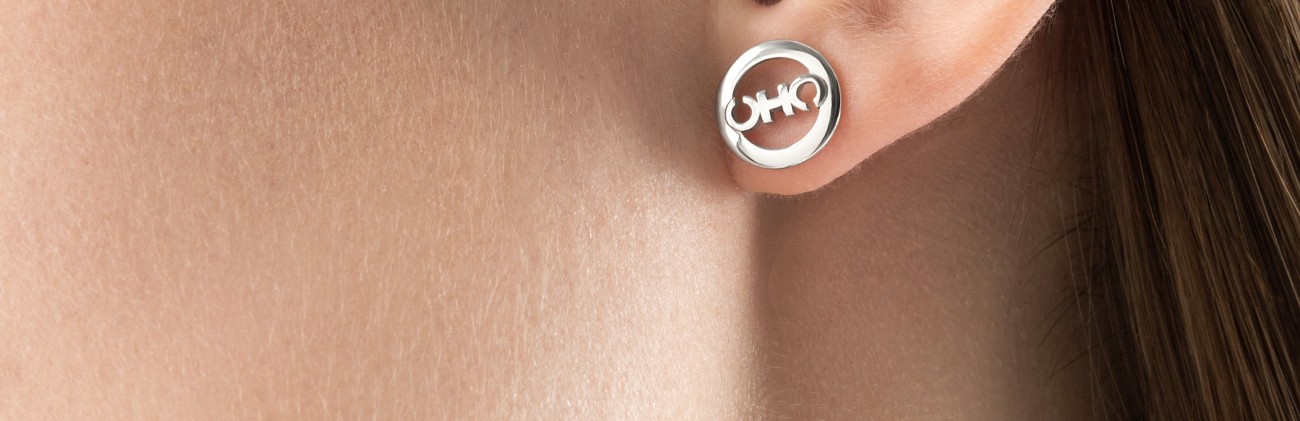 Серебряные серьги-пуссеты LETTERE I из коллекции ОНО STYLE в виде фирменного логотипа в окружности – простое украшение в стиле современный минимализм. Без камней и вставок. Имеют декоративное и надежное защитное покрытие белым родием. Такое же покрытие используется в изделиях из белого золота 585 пробы. Родий – драгоценный металл платиновой группы и, нанесенный на поверхность украшения, позволяет сохранить его первоначальный вид, защищая от механических повреждений и потемнения. Толщина покрытия 10 мкм. Надеваются и застегиваются серьги так же, как серьги-гвоздики. Удобный и компактный силиконовый фиксатор в оправе из родированного ювелирного сплава позволяет просто и надежно зафиксировать украшение на любой мочке уха. Размер застежки 5,5х5 мм. Длина штифта для фиксации застежки 10 мм, диаметр штифта 0,8 мм. Более тонкий штифт, чем у стандартных винтовых застежек (1,2 мм) обеспечивает максимальный комфорт при надевании и ношении. Диаметр декоративной части 10 мм. Толщина 1,0 мм.