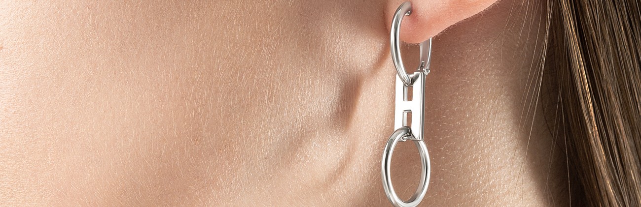 Серебряные серьги MANETTE c английским замком из коллекции ОНО STYLE в виде трех скрепленных букв логотипа. Без камней и вставок. Имеют декоративное и надежное защитное покрытие белым родием. Такое же покрытие используется в изделиях из белого золота 585 пробы. Родий – драгоценный металл платиновой группы и, нанесенный на поверхность украшения, позволяет сохранить его первоначальный вид, защищая от механических повреждений и потемнения. Толщина покрытия 10 мк. Длина декоративной части вместе с застежкой 38 мм Толщина 1,2 мм.