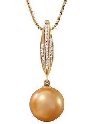 Подвеска из коллекции MAYSAKU: жемчуг Южных морей идеальной сферической формы, золото 585˚, 25 бриллиантов (0,06 ct), государственное пробирное клеймо. Вес изделия 5,02 г.