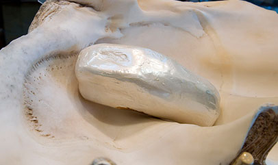 Текстуры оправ простые: гладкие, с легкой шершавостью или лаконичным объемным орнаментом. Часто жемчуг используется в сочетании с сияющими камнями — бриллиантами, фианитами, сапфирами, цирконами. Выразительно выглядят украшения с жемчужинами-подвесками сферической формы, особенно неожиданное впечатление производят кольца с такими деталями.